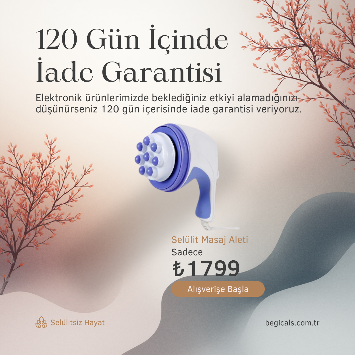 Begicals Masaj Aleti'ni seviyoruz ve sizin de seveceğinizden eminiz! Bu yüzden 30 Günlük, Risksiz Deneme sunuyoruz. Eğer Begicals Masaj Aleti'ni beğenmezseniz, paranızı iade edeceğiz.