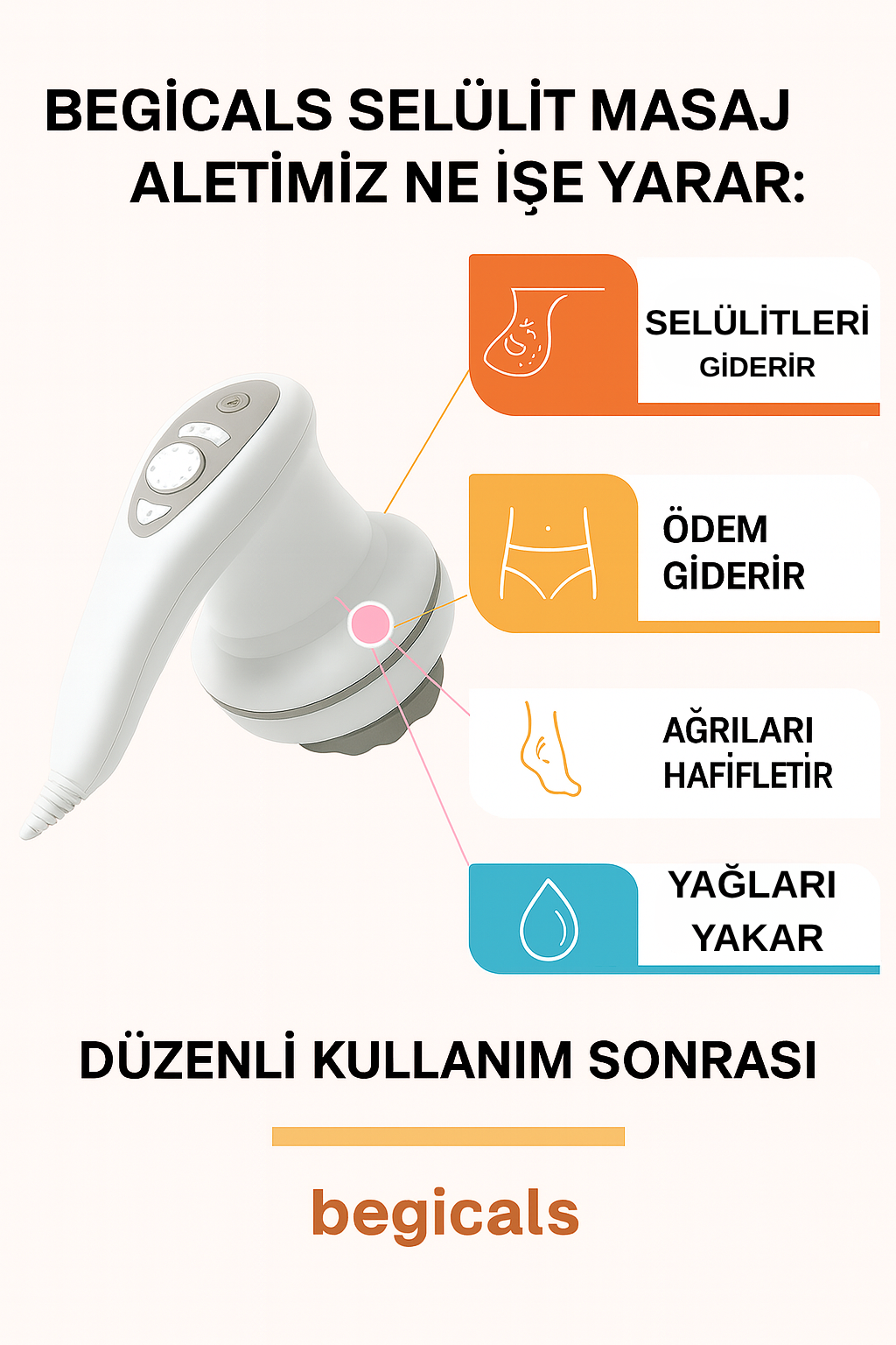 Begicals Selülit Masaj Seti, cildinin altındaki hareketsiz bölgeleri yeniden canlandırır, sıkı ve pürüzsüz bir cilt hissini destekler.